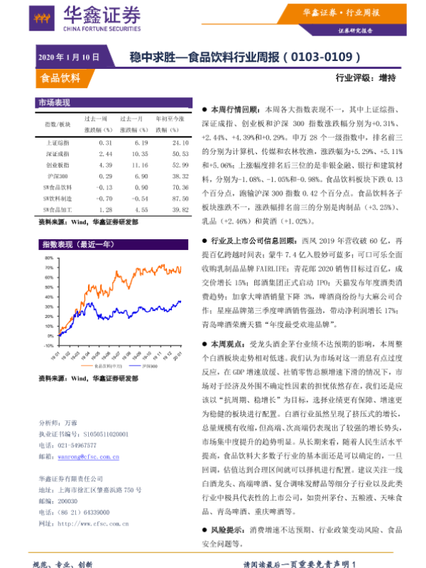 【华鑫证券】【20200110】20200110-华鑫证券-食品饮料行业周报:稳中求胜-11页