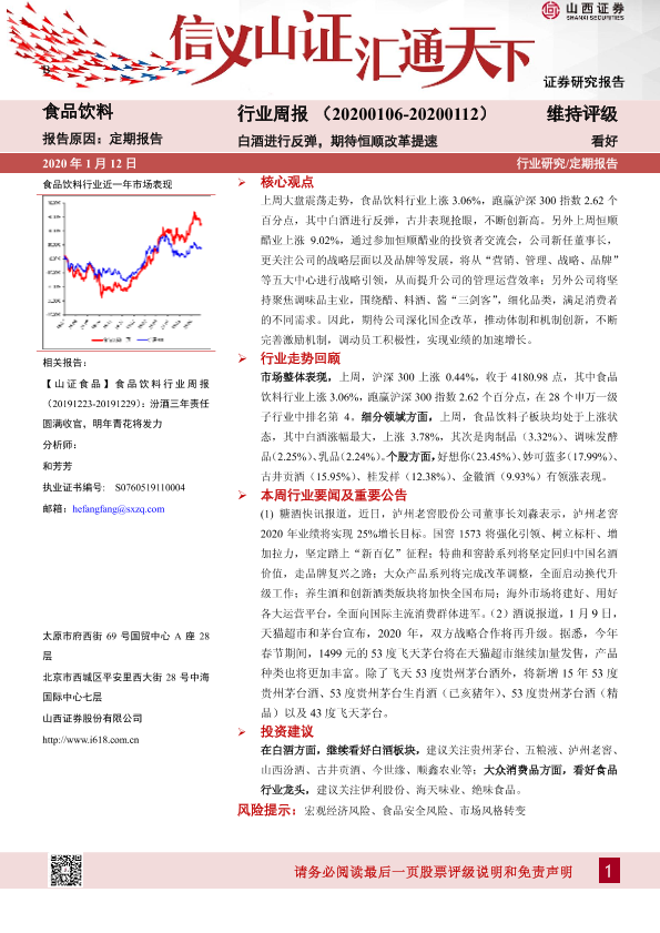【山西证券】【20200112】20200112-山西证券-食品饮料行业周报:白酒进行反弹,期待恒顺改革提速-9页