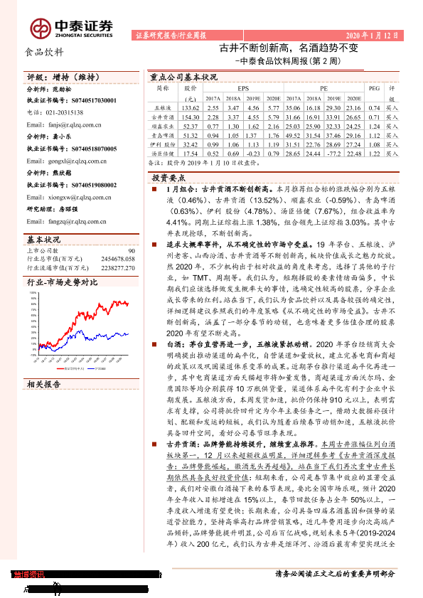 【中泰证券】【20200112】中泰食品饮料周报(第2周):古井不断创新高,名酒趋势不变-6页