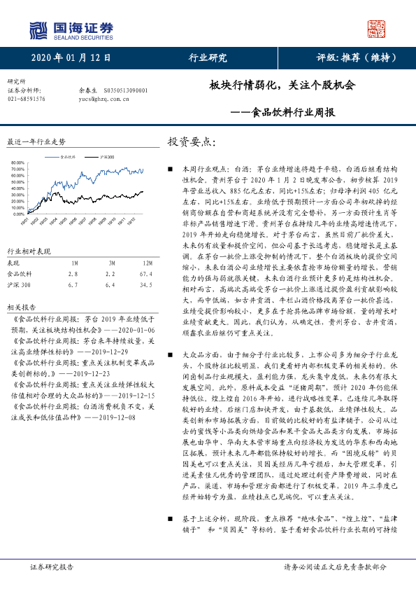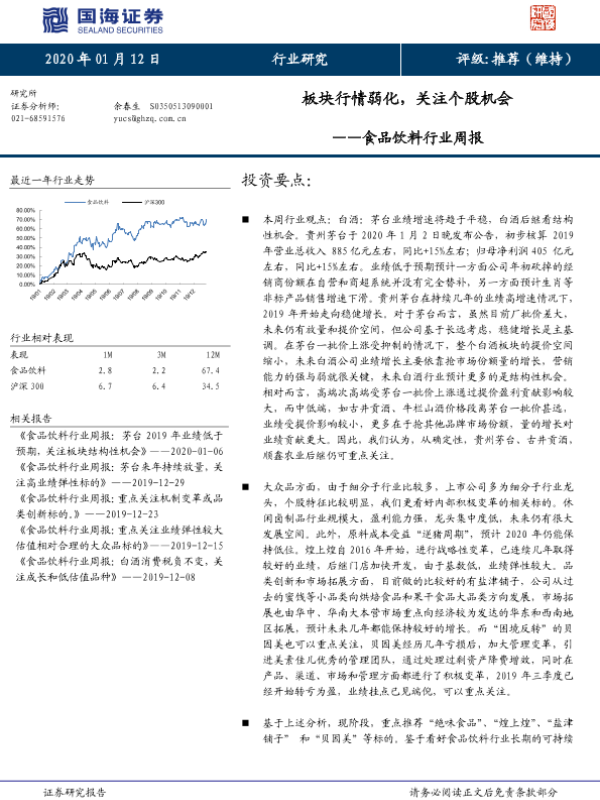 【国海证券】【20200112】食品饮料行业周报:板块行情弱化,关注个股机会-23页