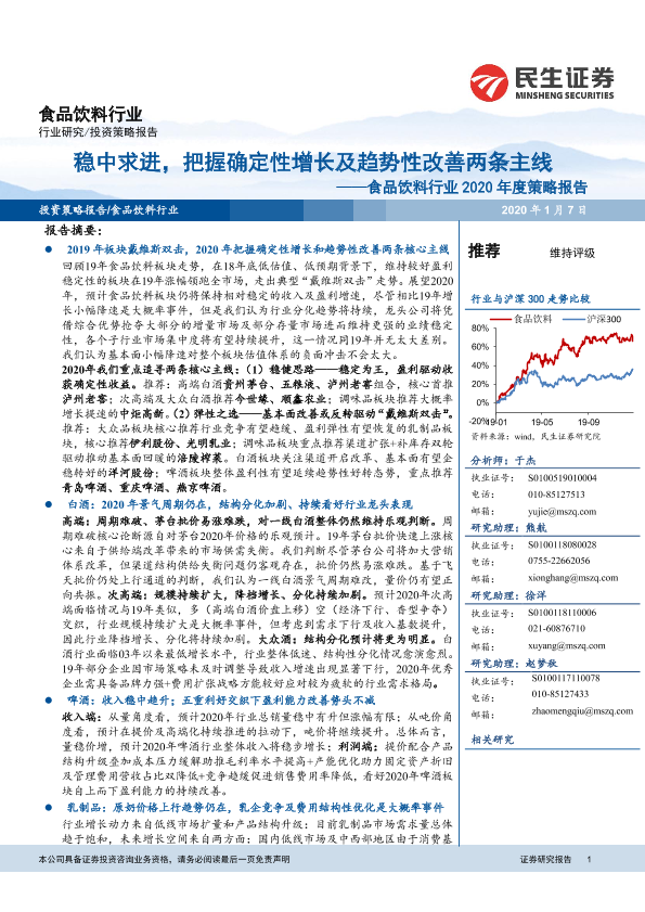 【民生证券】【20200107】食品饮料行业2020年度策略报告:稳中求进,把握确定性增长及趋势性改善两条主线-73页