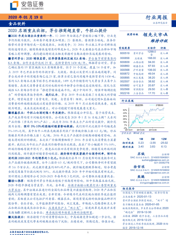 【安信证券】【20200119】2020名酒重点出招,茅台推商超直营,牛栏山提价-22页