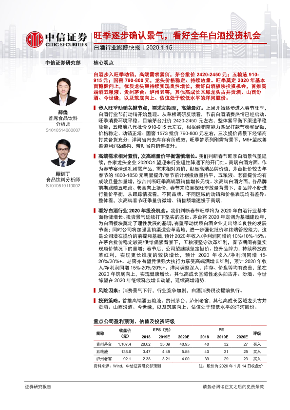 【中信证券】【20200115】白酒行业跟踪快报:旺季逐步确认景气,看好全年白酒投资机会-2页
