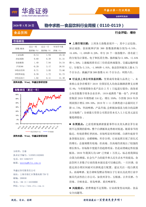 【华鑫证券】【20200120】20200120-华鑫证券-食品饮料行业周报:稳中求胜-11页