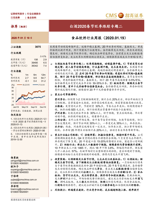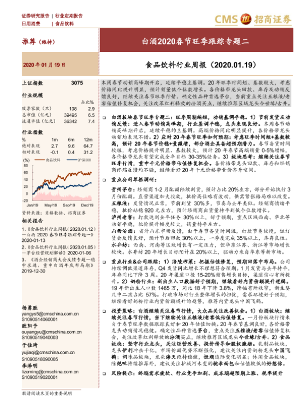招商证券 春节旺季 白酒 行业周报 食品饮料