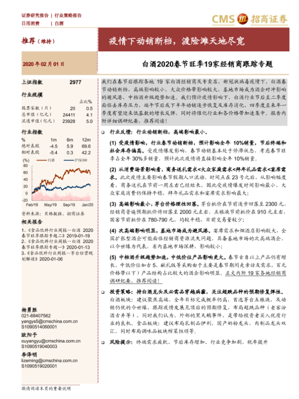 【海通证券】【20200201】白酒2020春节旺季19家经销商跟踪专题:疫情下动销断档,渡险滩天地尽宽-6页