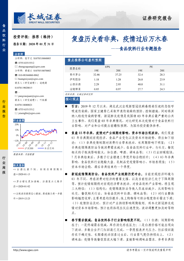 【长城证券】【20200131】20200131-长城证券-食品饮料行业专题报告:复盘历史看非典,疫情过后万木春-16页