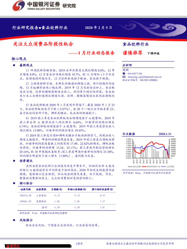 【银河证券】【20200205】食品饮料行业1月行业动态报告:关注大众消费品阶段性机会-34页