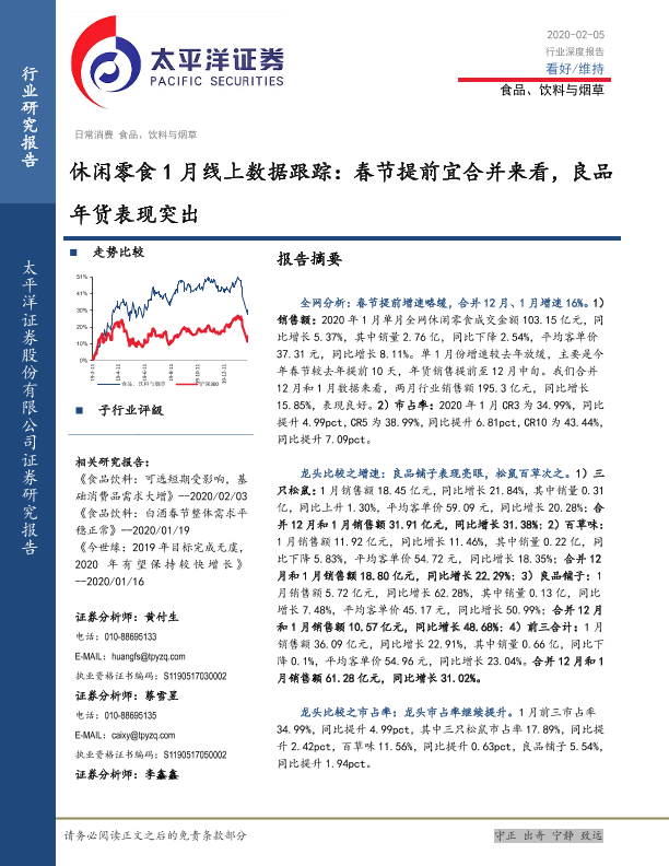 【太平洋证券】【20200205】休闲零食1月线上数据跟踪:春节提前宜合并来看,良品年货表现突出-8页