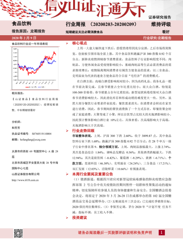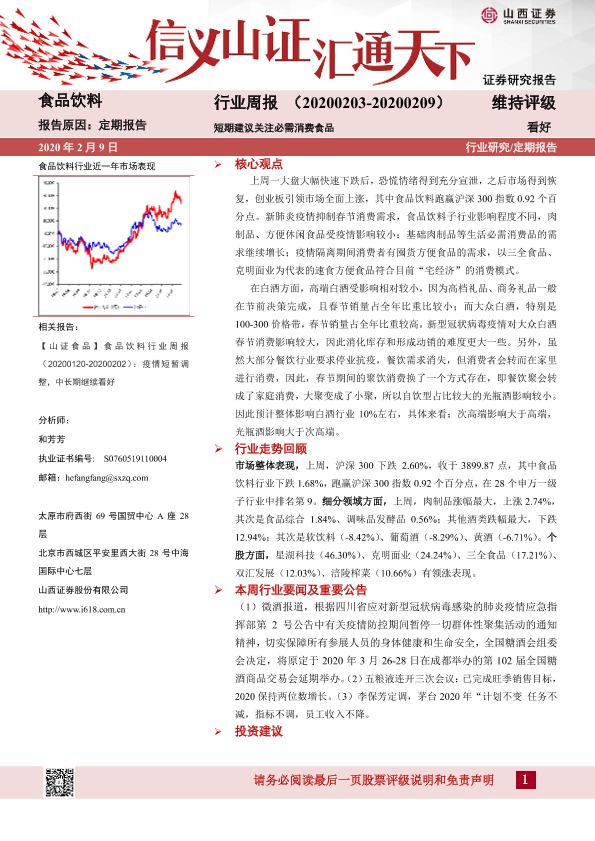 【山西证券】【20200209】20200209-山西证券-食品饮料行业周报:短期建议关注必需消费食品-10页