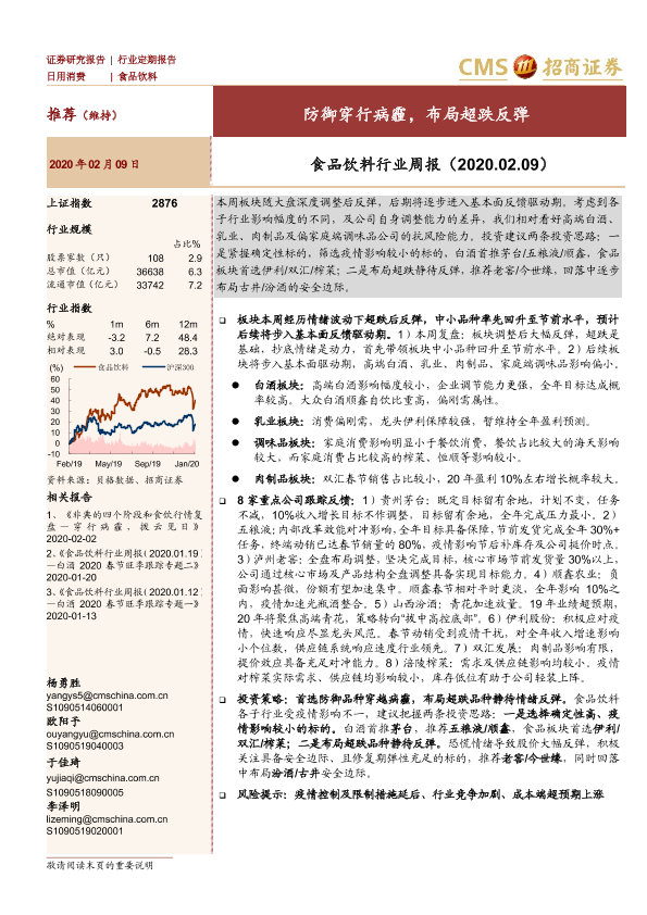 【海通证券】【20200209】食品饮料行业周报:防御穿行病霾,布局超跌反弹-8页