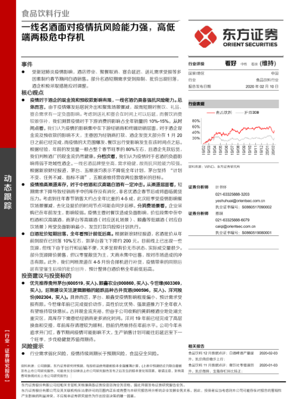 【东方证券】【20200210】食品饮料行业:一线名酒面对疫情抗风险能力强,高低端两极危中存机-3页