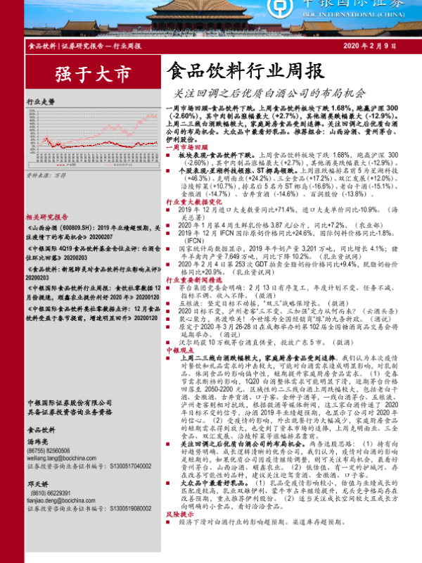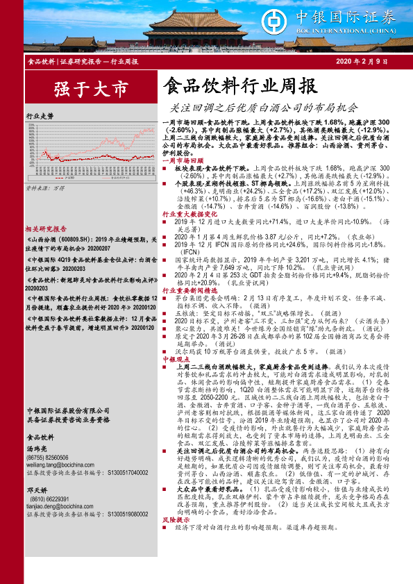 【中银证券】【20200209】20200209-中银证券-食品饮料行业周报:关注回调之后优质白酒公司的布局机会-15页
