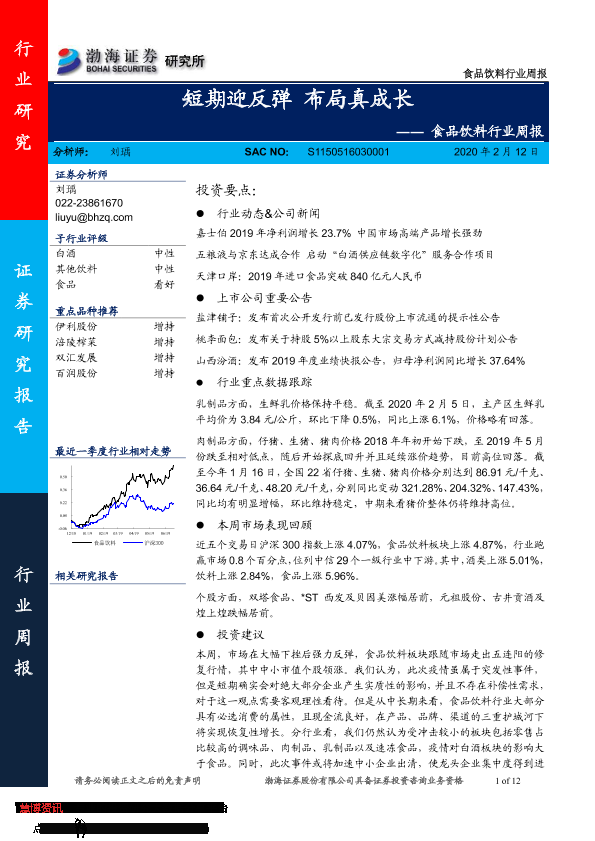 【渤海证券】【20200212】20200212-渤海证券-食品饮料行业周报:短期迎反弹 布局真成长-12页