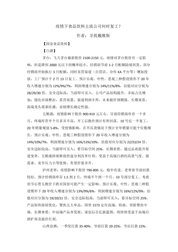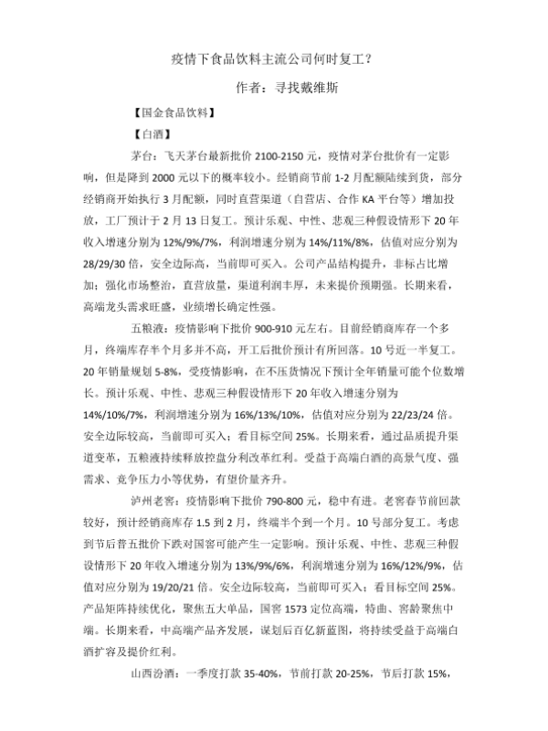 【国金证券】【20200214】疫情下食品饮料主流公司何时复工?-5页