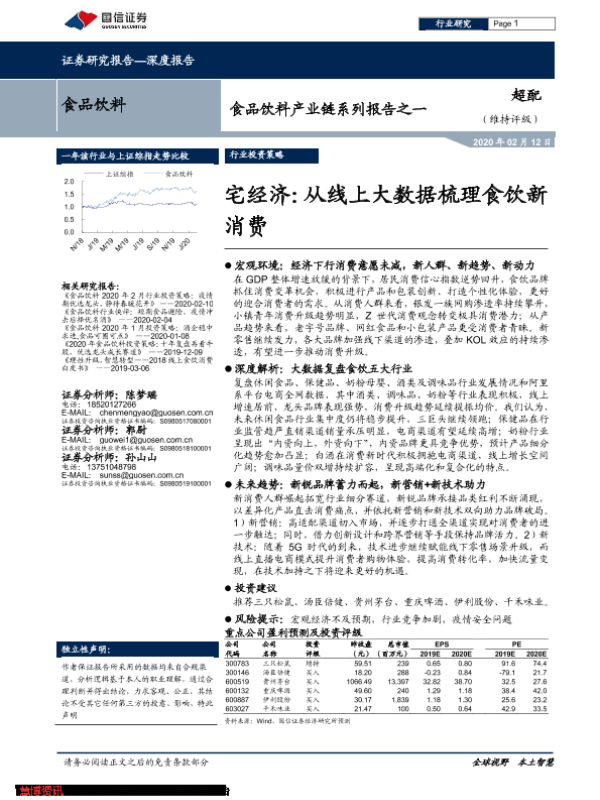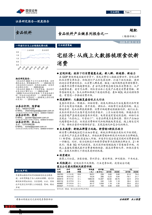 【国信证券】【20200212】食品饮料产业链系列报告之一:宅经济:从线上大数据梳理食饮新消费-46页