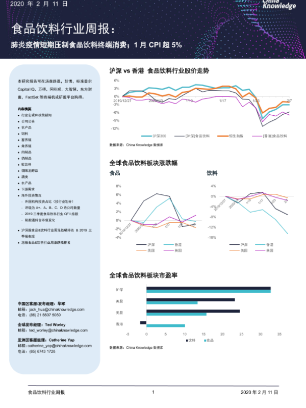 【China Knowledge】【20200211】食品饮料行业周报:肺炎疫情短期压制食品饮料终端消费;1月CPI超5%-29页