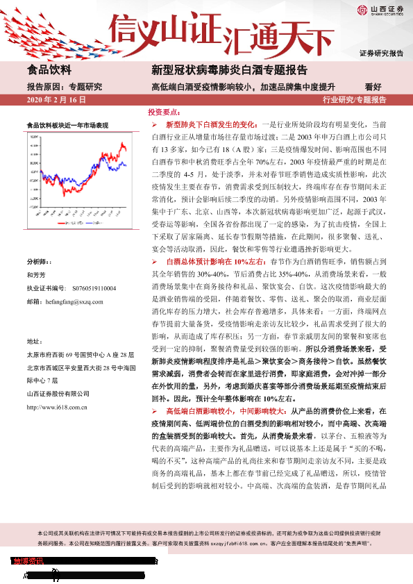 【山西证券】【20200216】20200216-山西证券-食品饮料:新型冠状病毒肺炎白酒专题报告-高低端白酒受疫情影响较小,加速品牌集中度提升-15页