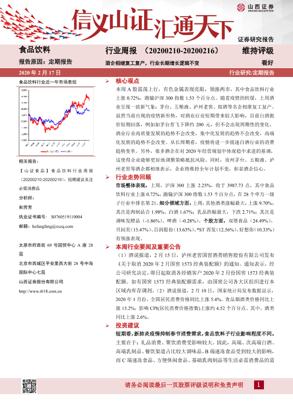 【山西证券】【20200217】20200217-山西证券-食品饮料行业周报:酒企相继复工复产,行业长期增长逻辑不变-11页