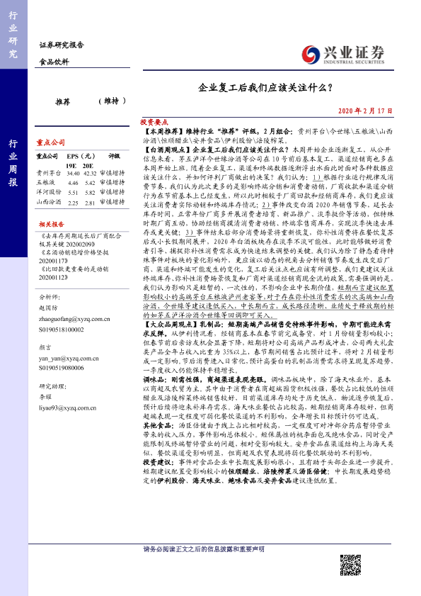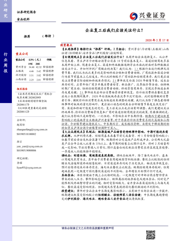 【兴业证券】【20200217】20200217-兴业证券-食品饮料行业周报:企业复工后我们应该关注什么?-16页
