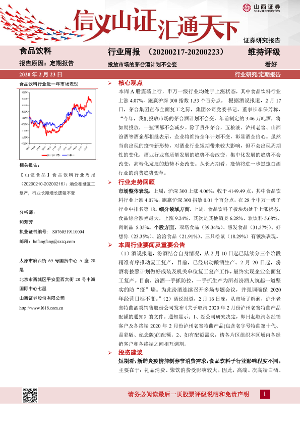 【山西证券】【20200223】20200223-山西证券-食品饮料行业周报:投放市场的茅台酒计划不会变-11页
