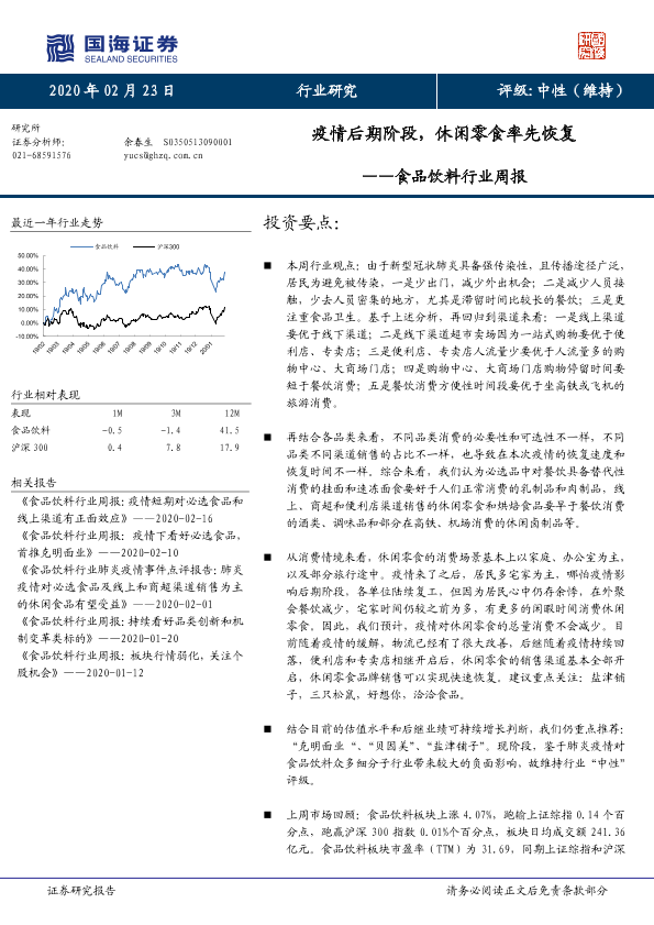 【国海证券】【20200223】20200223-国海证券-食品饮料行业周报:疫情后期阶段,休闲零食率先恢复-19页