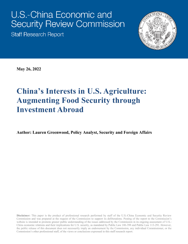 【U.S.-China Economic and Security Review Commission】【20220526】中国在美国农业中的利益:通过海外投资加强粮食安全-27页