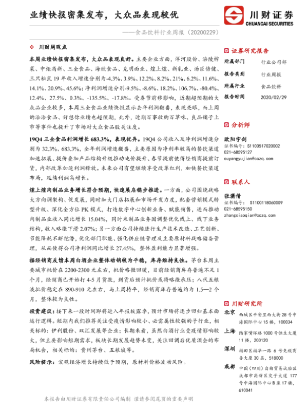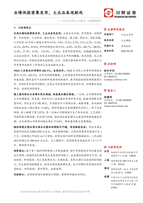 【川财证券】【20200229】食品饮料行业周报:业绩快报密集发布,大众品表现较优-16页