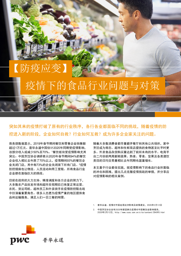 【普华永道中天会计师事务所】【20200229】防疫应变 - 疫情下的食品行业问题与对策-4页