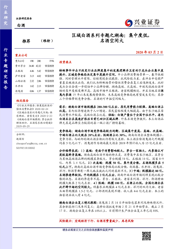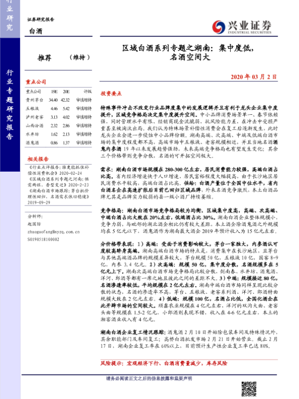 【兴业证券】【20200302】区域白酒系列专题之湖南:集中度低,名酒空间大-11页
