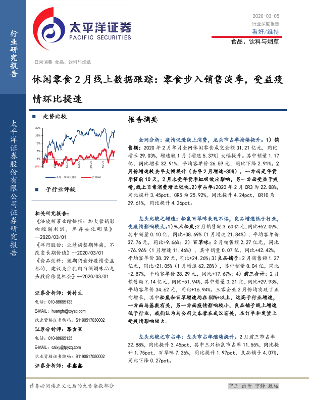 【太平洋证券】【20200305】20200305-太平洋-休闲零食2月线上数据跟踪:零食步入销售淡季,受益疫情环比提速-8页