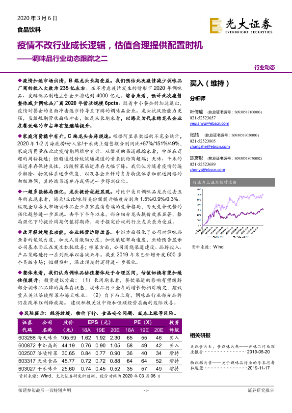 【光大证券】【20200306】20200306-光大证券-调味品行业动态跟踪之二:疫情不改行业成长逻辑,估值合理提供配置时机-10页