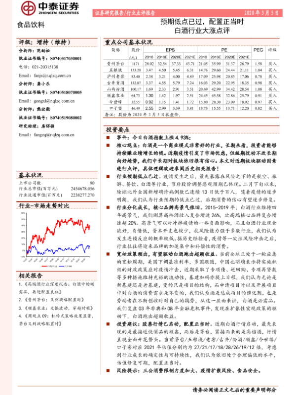 【中泰证券】【20200305】食品饮料:预期低点已过,配置正当时白酒行业大涨点评-4页