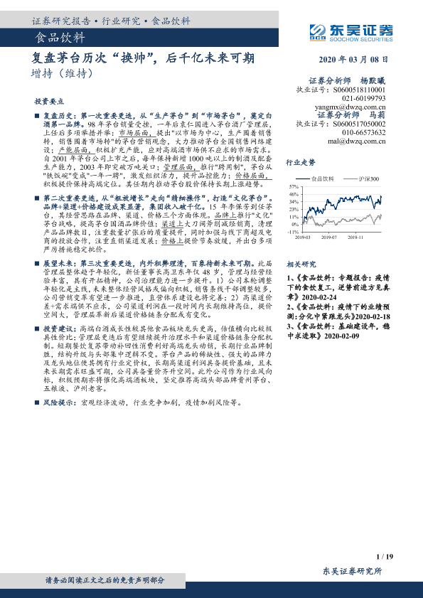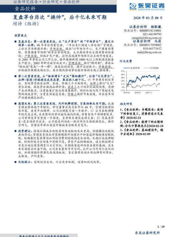 【东吴证券】【20200308】食品饮料:复盘茅台历次“换帅”,后千亿未来可期-19页