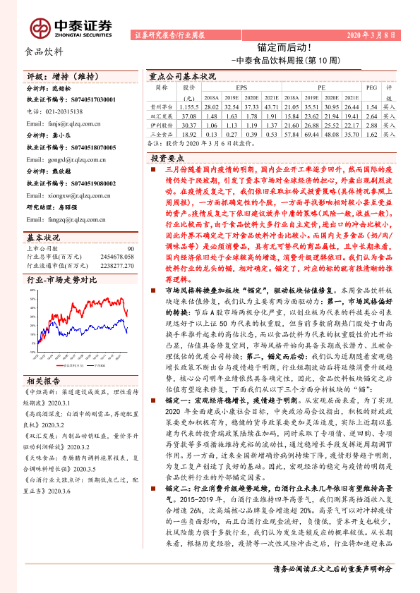 【中泰证券】【20200308】中泰食品饮料周报(第10周):锚定而后动!-17页
