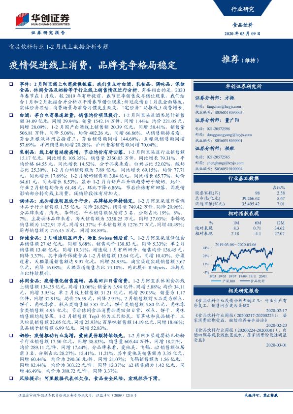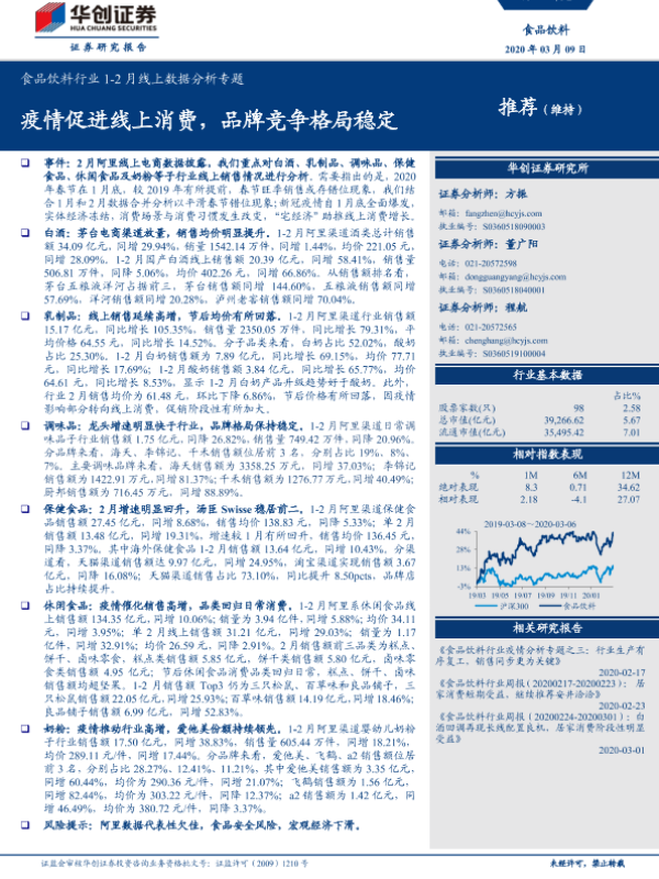 【华创证券】【20200309】食品饮料行业1-2月线上数据分析专题:疫情促进线上消费,品牌竞争格局稳定-20页