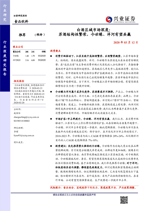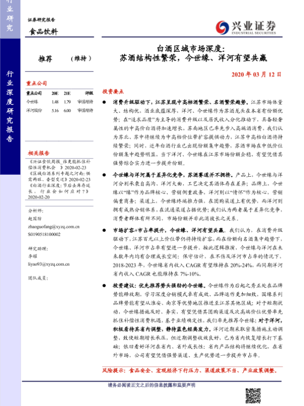 【兴业证券】【20200312】白酒区域市场深度:苏酒结构性繁荣,今世缘、洋河有望共赢-31页