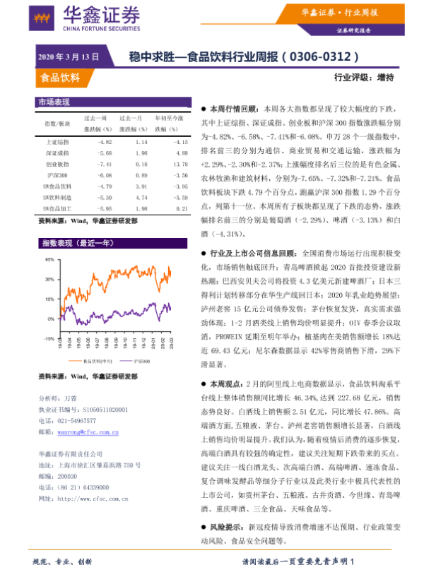 【华鑫证券】【20200313】20200313-华鑫证券-食品饮料行业周报:稳中求胜-12页