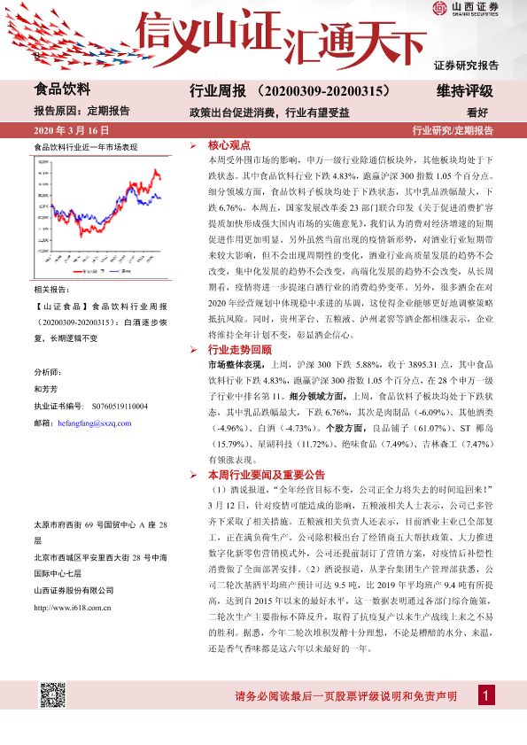 【山西证券】【20200316】20200316-山西证券-食品饮料行业周报:政策出台促进消费,行业有望受益-11页
