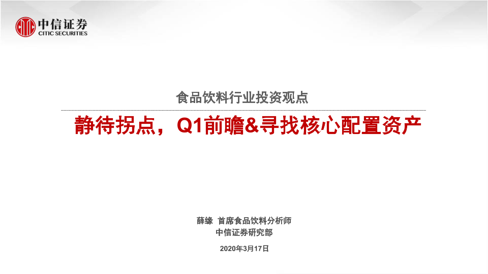 【中信证券】【20200317】食品饮料行业投资观点:静待拐点,Q1前瞻&寻找核心配置资产-22页