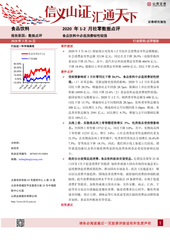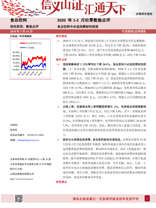 【山西证券】【20200316】2020年1-2月社零数据点评:食品饮料中必选消费韧性较强-4页