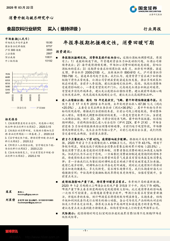 【国金证券】【20200322】20200322-国金证券-食品饮料行业研究:年报季报期把握确定性,消费回暖可期-16页