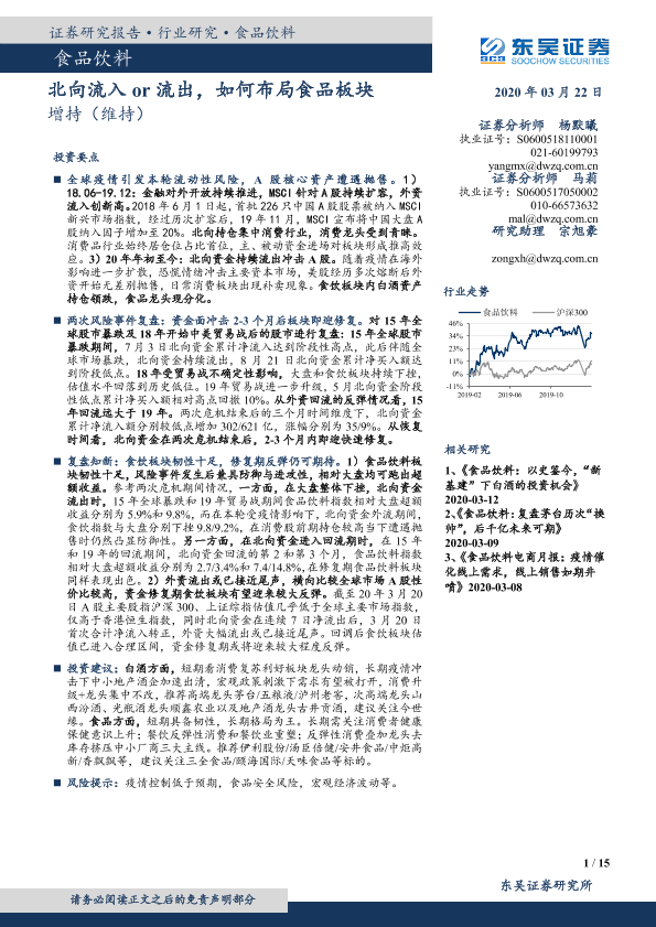 【东吴证券】【20200322】食品饮料:北向流入or流出,如何布局食品板块-15页