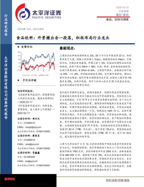 【太平洋证券】【20200322】食品饮料:外资撤出告一段落,积极布局行业龙头-11页