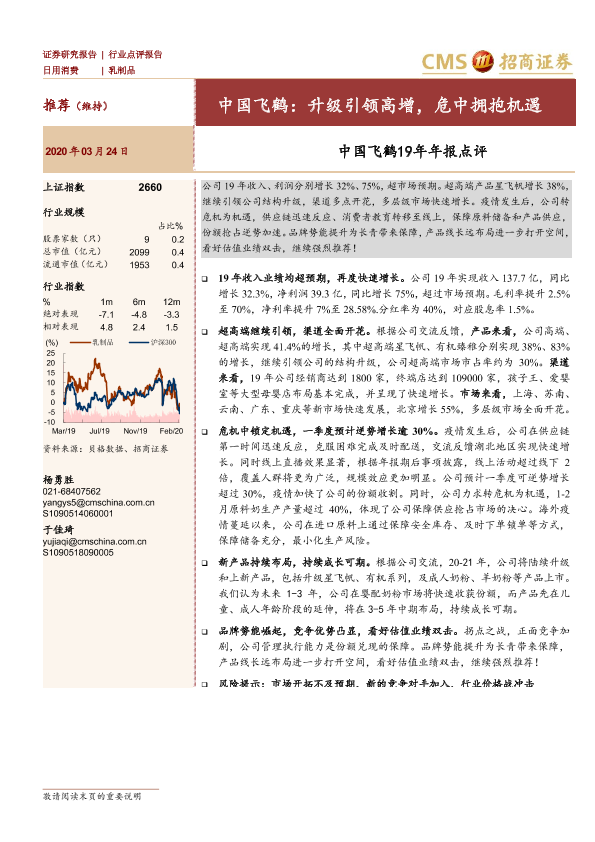 【海通证券】【20200324】中国飞鹤19年年报点评:中国飞鹤:升级引领高增,危中拥抱机遇-3页