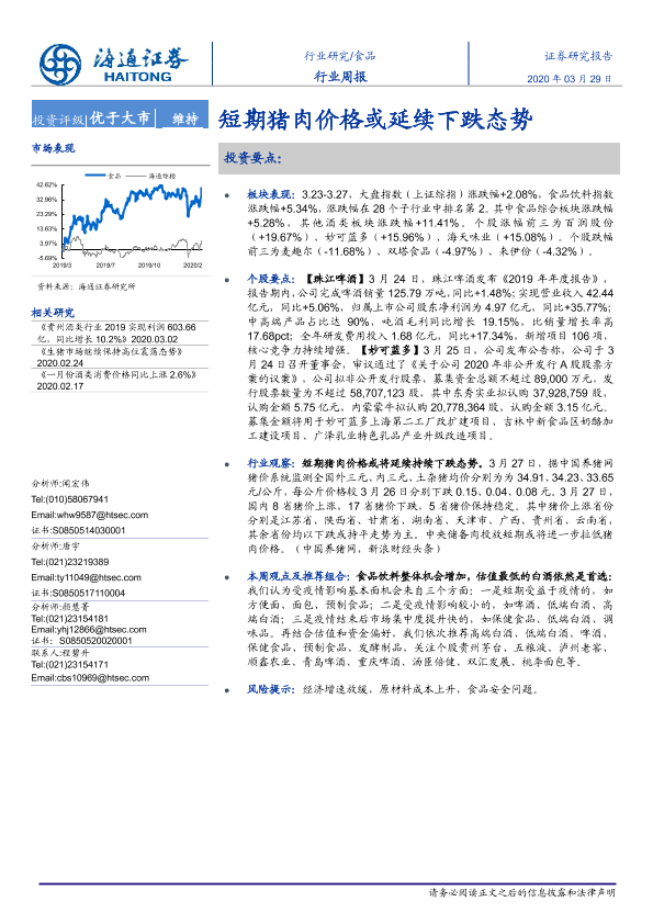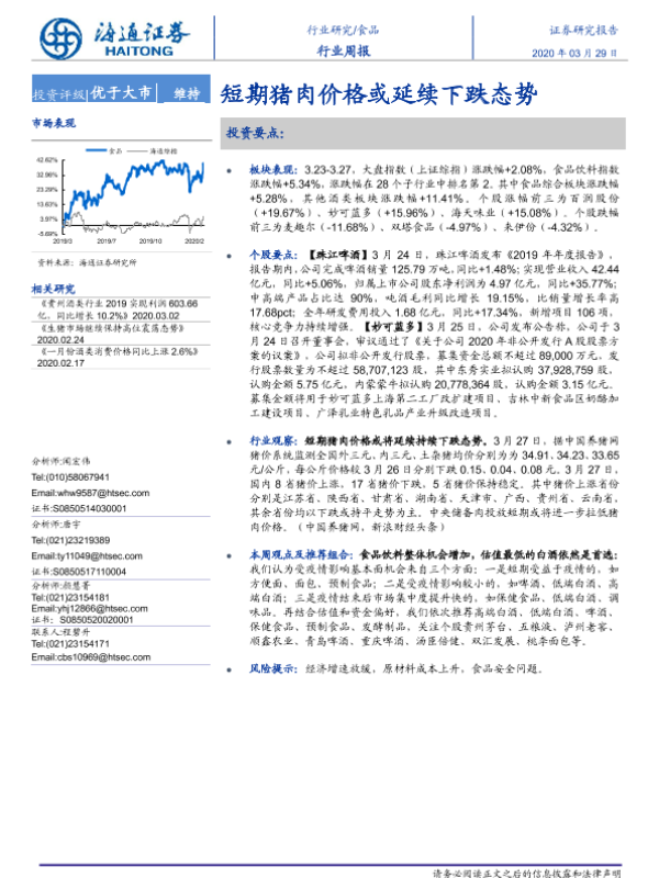 【海通证券】【20200329】20200329-海通证券-食品行业周报:短期猪肉价格或延续下跌态势-10页