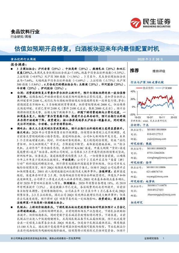 【民生证券】【20200330】20200330-民生证券-食品饮料行业周报:估值如预期开启修复,白酒板块迎来年内最佳配置时机-24页