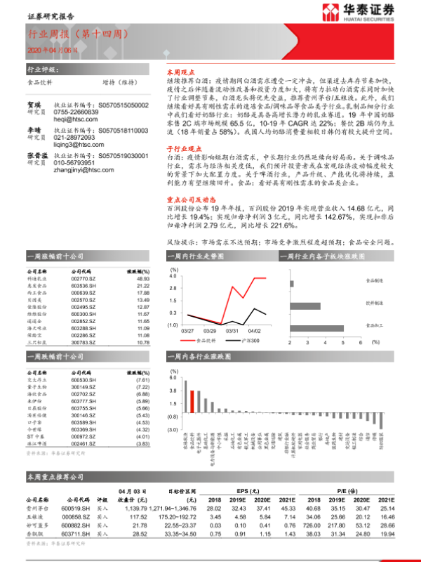 【华泰证券】【20200406】20200406-华泰证券-食品饮料行业周报(第十四周)-11页