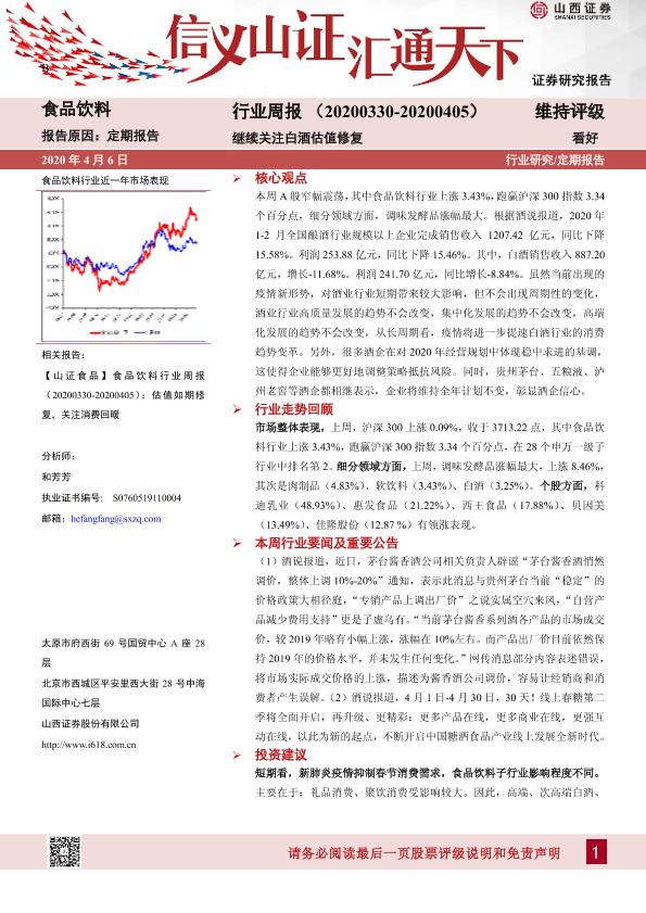 【山西证券】【20200406】20200406-山西证券-食品饮料行业周报:继续关注白酒估值修复-11页