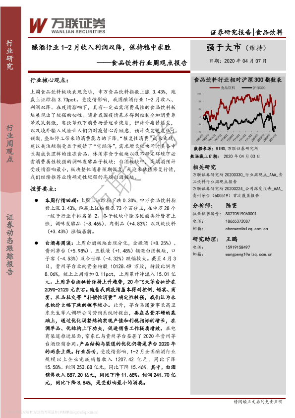 【万联证券】【20200407】20200407-万联证券-食品饮料行业周观点报告:酿酒行业1-2月收入利润双降,保持稳中求胜-13页